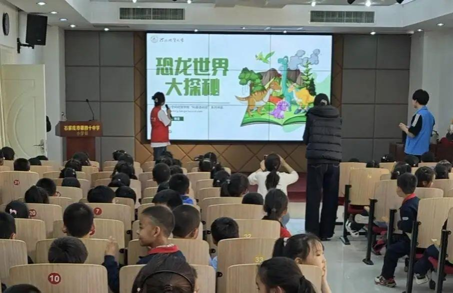 为激发青少年对古生物科学的兴趣,普及地球科学知识,土地科学与空间规划学院科协携手石家庄市第四十中小学 3 月 24 日打造了一场别开生面的“科普进校园”活动,以科普讲解与互动游戏相结合的方式,为同学们带来了一场精彩纷呈的古生物科普盛宴。