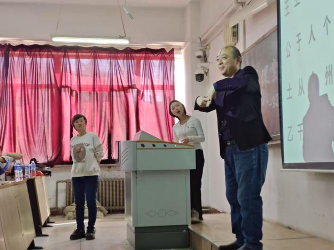 3月22日,由校青年志愿者协会助残爱幼部承办的“指尖传情,爱心筑梦”雷锋月手语课堂活动在校本部教学一号楼305成功举办。活动邀请了河北省桥西区聋协主席光巍老师为大家现场授课和指导。活动伊始,来自新校区的志愿者们为大家带来精彩的手语表演—萤火虫的微光,点燃现场的氛围的同时也激起了观众对手语的兴趣。然后,“手语小老师们”带领同学们学习了简单的手语词汇及规则,使同学们简单了解了基本的手语。活动还通过击鼓传花、手语抢答等游戏有效的加强了同学们对手语知识的掌握,也增加了活动的趣味性,同时也使同学们更深刻的感受到手语带给我们的现实意义。