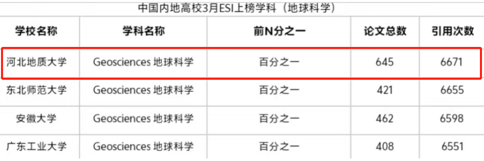 根据科睿唯安(Clarivate Analytics)集团《基本科学指标》(Essential Science Indicators,简称 ESI)2025 年 3 月公布的最新统计数据,beat365在线唯一官网登录地球科学首次晋升ESI 全球机构排名前1%,系河北省唯一进入该排名的地球科学学科,这一里程碑式的突破,标志着学校学科建设取得重大进展。