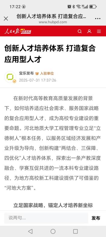 近日,人民日报网,中国网、人民网、河北日报等中央及省级主流媒体连续聚焦beat365官网工程管理专业"两结合、三保障、四优化"育人模式。这是该专业继获评国家级一流本科专业建设点后,再次以"党建+专业"深度融合的创新实践赢得社会广泛认可。