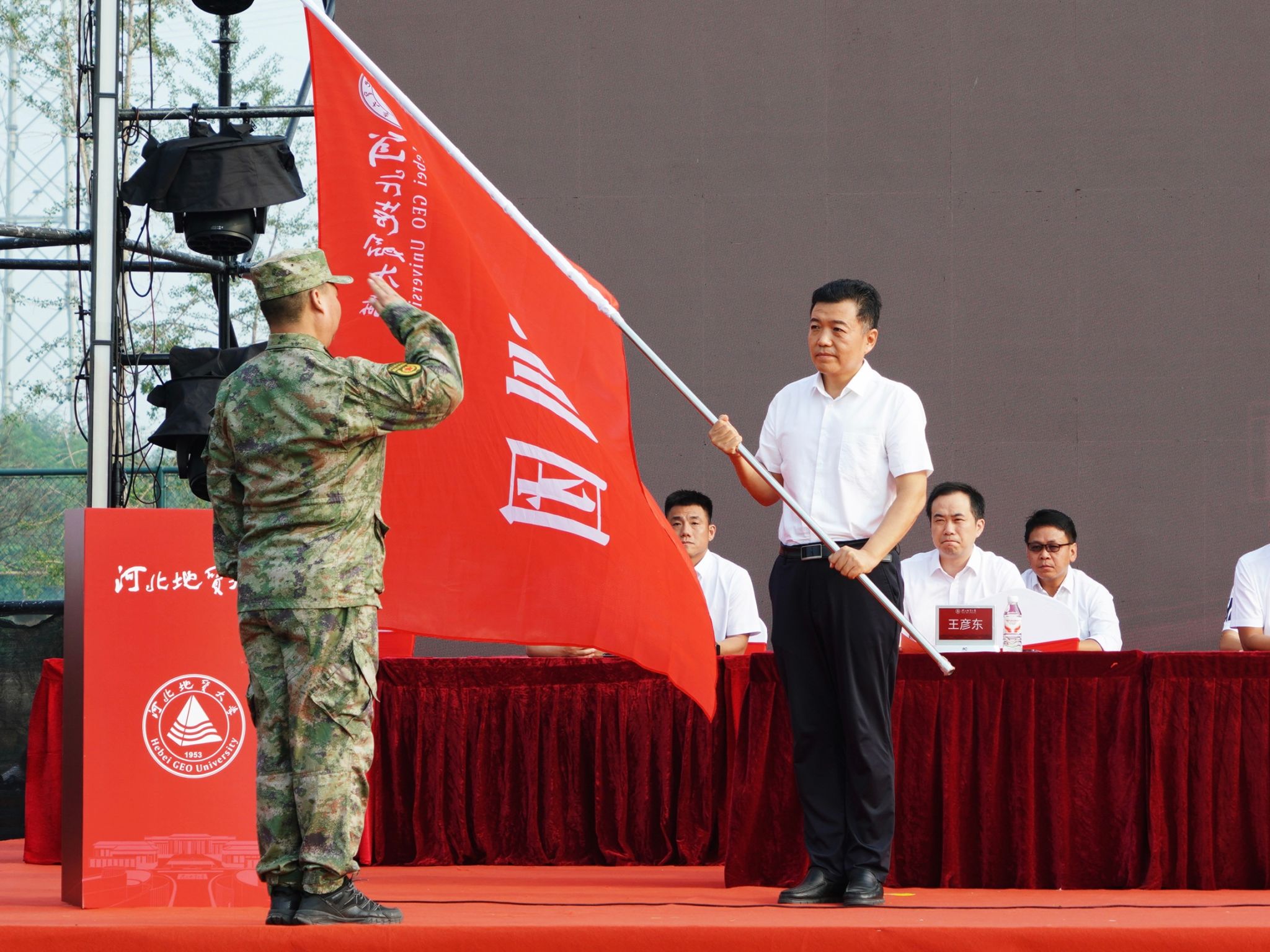 校党委书记和志强向国旗班授旗