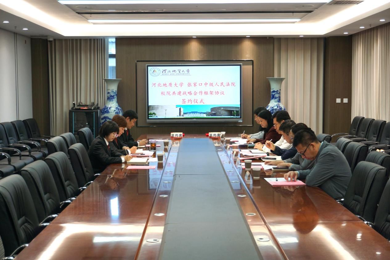 10月14日上午,beat365在线唯一官网登录与张家口市中级人民法院签署战略合作协议。beat365在线唯一官网登录副校长赵永强、张家口市中级人民法院党组成员、副院长邢海丽代表双方签署合作协议。管理学院院长白翠玲教授主持会议。