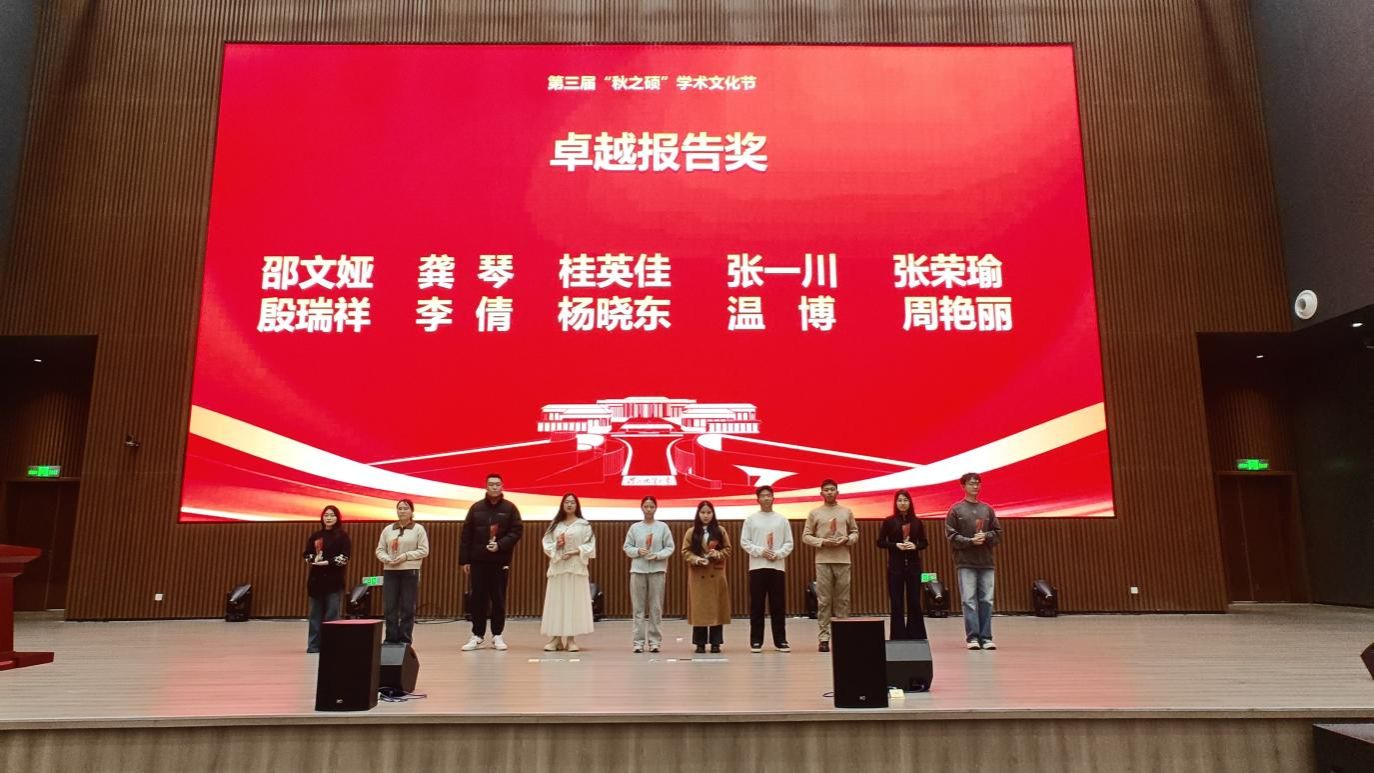 12月5日,beat365在线唯一官网登录第三届“秋之硕”学术文化节圆满落幕。闭幕式在beat365官网春秋讲堂顺利举行,beat365在线唯一官网登录研究生学院院长曹南斌出席并致辞,研究生学院副院长彭永芳主持闭幕式,各研究生培养单位领导、导师代表和研究生代表出席。