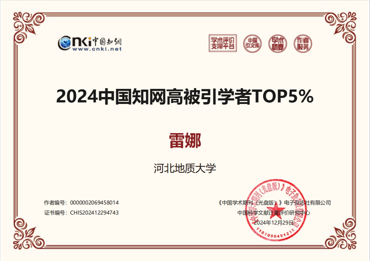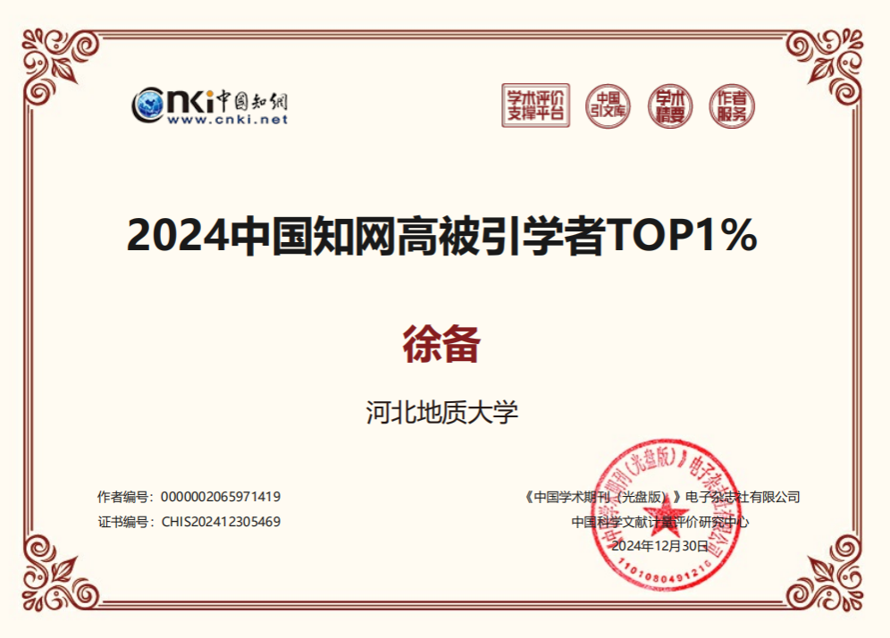 近日,中国知网中国科学文献计量评价研究中心公布了“2024中国知网高被引学者”预发布名单,beat365官网有30位教师入选。其中5位教师入选高被引学者Top1%,25位教师入选高被引学者Top5%,主要集中在地质学、地质资源与地质工程、遥感科学与技术、应用经济学等学科方向。