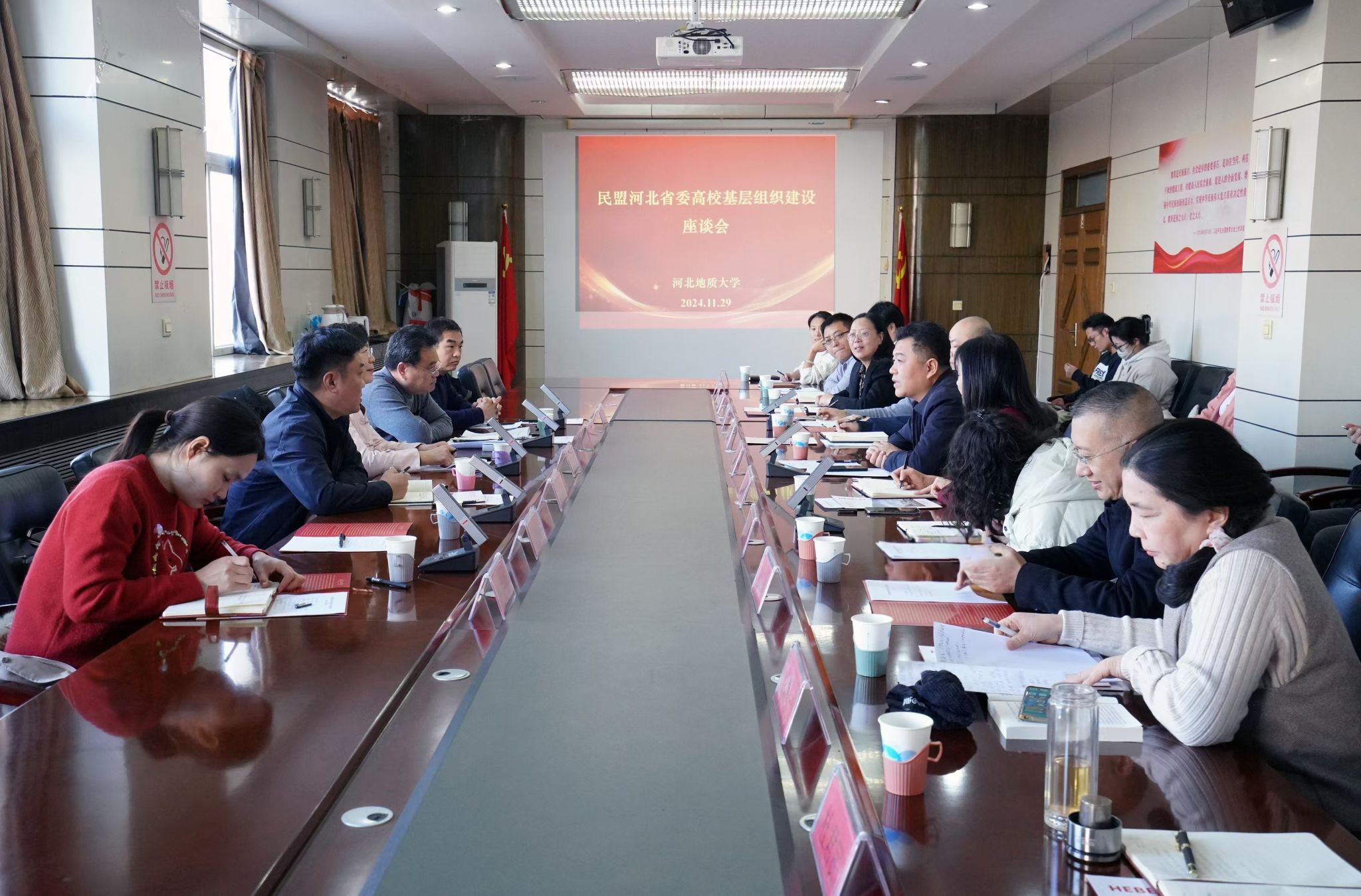 民盟省委组织部部长朱晓健、民盟石家庄市委专职副主委李立华,校党委统战部常务副部长蔡建英等参加交流座谈。