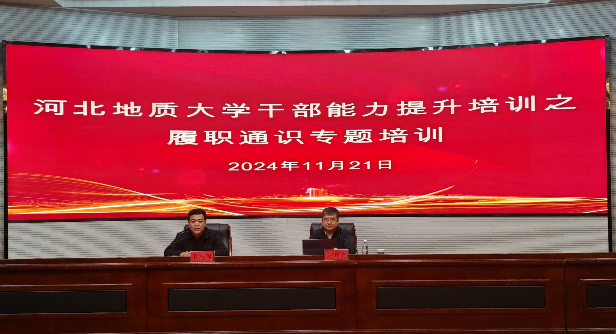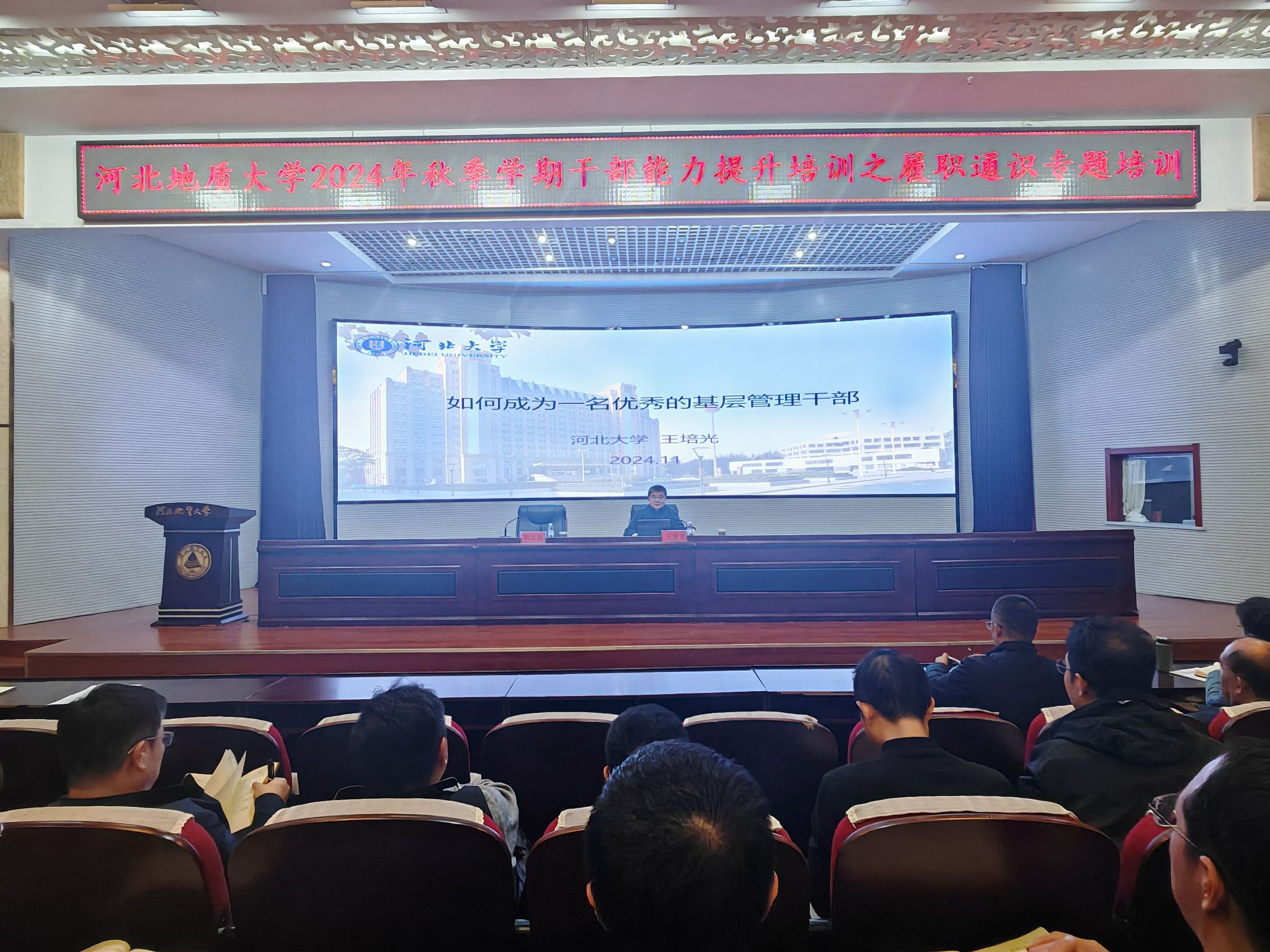 为深入贯彻落实党的二十届三中全会精神,学习贯彻习近平总书记在全国教育大会上的重要讲话和全国教育大会精神,提升beat365官网干部的政治素养和履职能力,11月21日下午,beat365官网在春秋讲堂举办秋季学期干部能力提升培训之履职通识专题培训。会议邀请河北大学原党委副书记、副校长、博士生导师王培光教授进行专题授课。校党委书记和志强主持培训会。