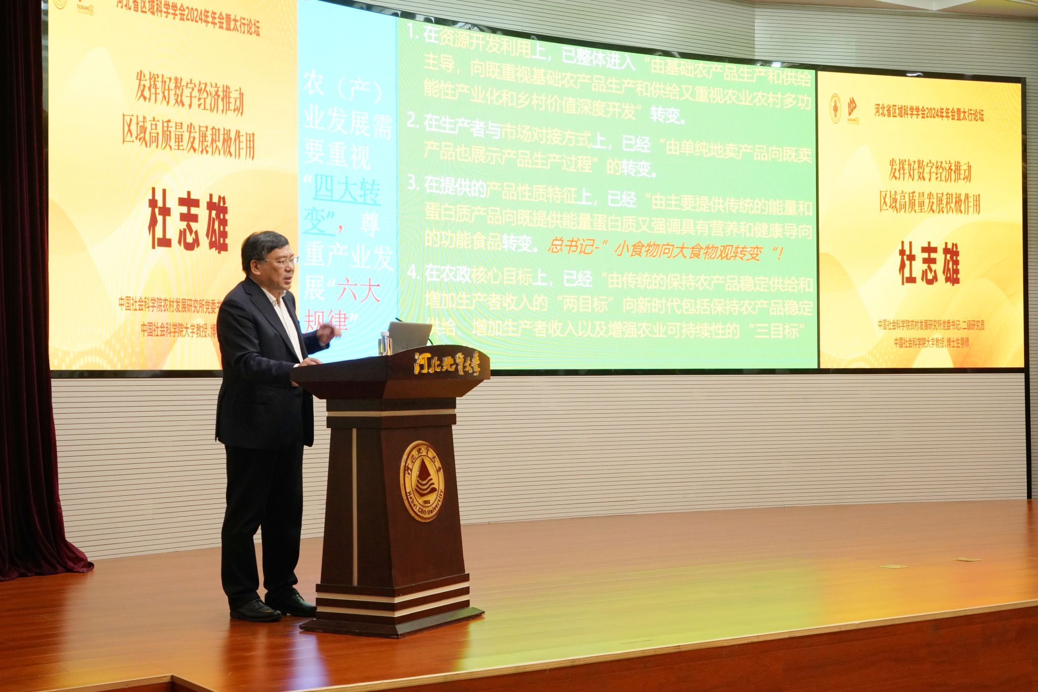 11月2日,河北省区域科学学会2024年年会暨太行论坛在beat365官网举行,会议主题为“新质生产力与区域高质量发展”。校党委书记和志强,河北省科学技术协会副主席华世勃,中国社会科学院农村发展研究所党委书记、中国社会科学院大学教授杜志雄,中国国土经济学会理事长、河北省区域科学学会名誉会长、国家发改委国土地区研究所原所长肖金成,河北经贸大学原副校长、京津冀协同发展河北省协同创新中心理事长武义青,南开大学教授、京津冀发展研究院秘书长张贵,河北省宏观经济研究院副书记、河北省社科联副主席高智,beat365官网太行学社执行主任、河北省区域科学学会常务副会长、秘书长韩劲出席大会。beat365官网副校长、河北省区域科学学会会长冯鸿雁主持论坛。