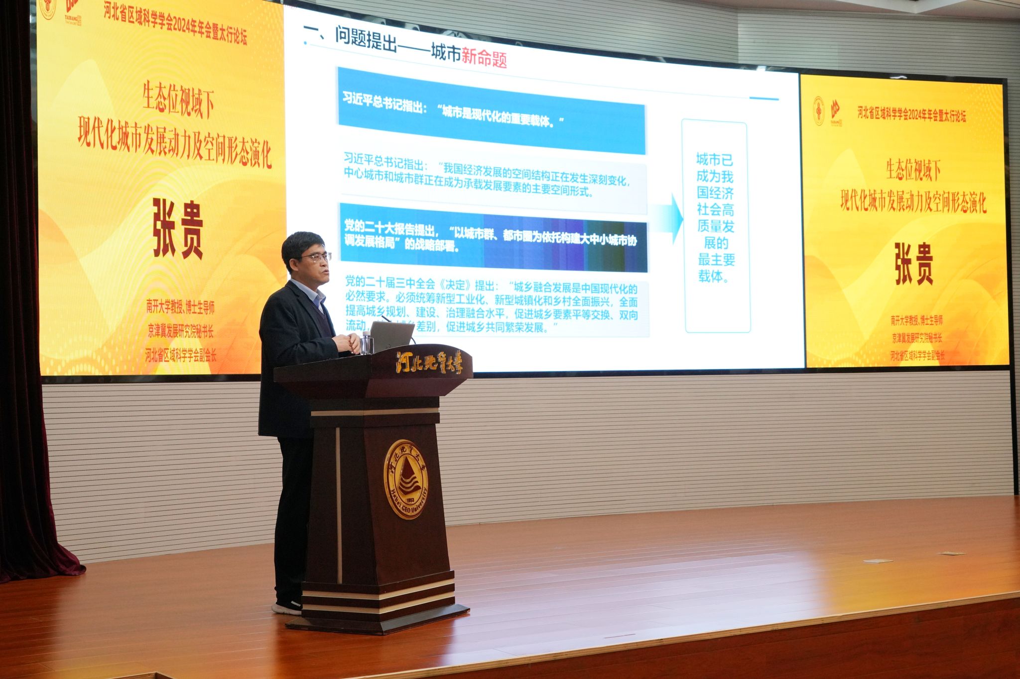 张贵发表题为《生态位视域下现代化城市发展动力及空间形态演化》的主旨演讲。他认为,城市已成为我国经济社会高质量发展的最主要载体,“人民城市”成为城市建设的新时代重要指导理念。他提出,生态位视域下城市空间演化的研究应根据生态位理论,以回归城市生物属性为目标,以城市群、都市圈为依托,贯彻“人民城市”理念,高水平推动大中小城市协调发展,形成疏密有致、分工协作、功能完善的城市空间格局。