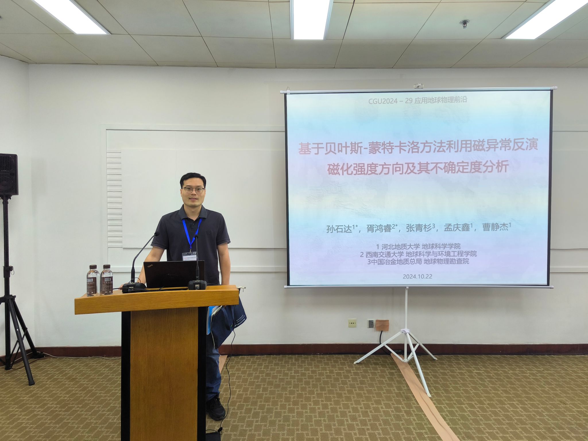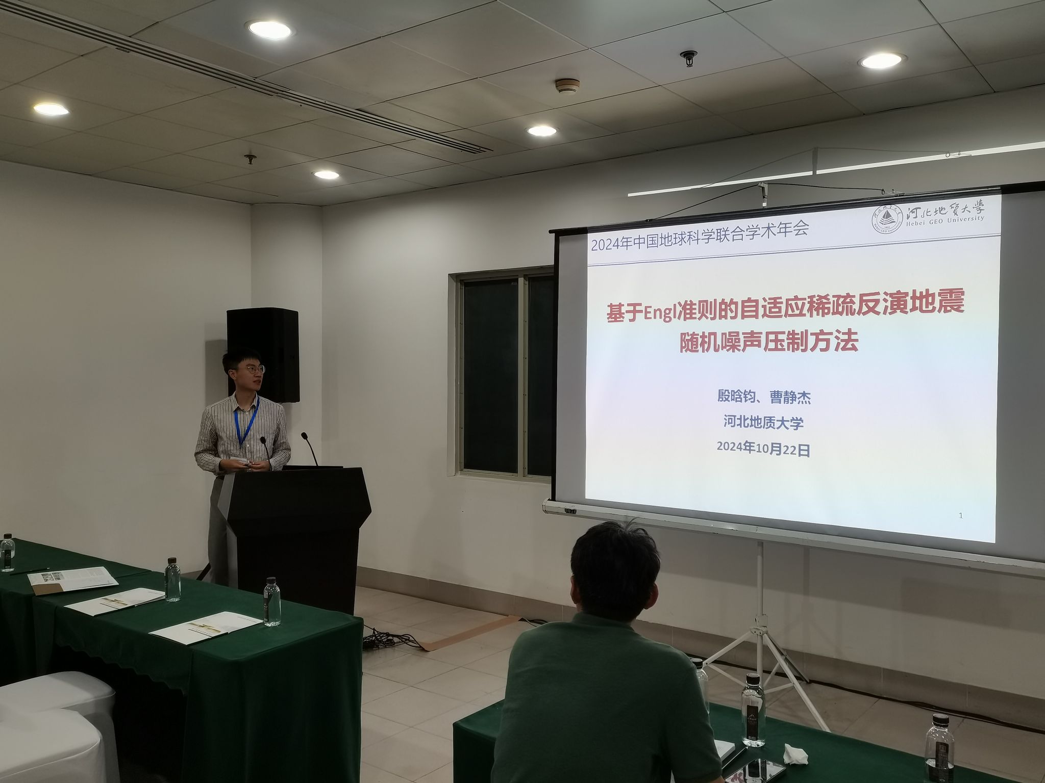 beat365官网副校长金胜带领地球科学学院老师们参加了本次会议。曹静杰教授作为“第28专题:浅地表地球物理进展”和“第44专题:多采样率地震勘探技术”的专题召集人并且主持了分会场。殷晗钧教师作了题为《基于Engl准则的自适应稀疏反演地震随机噪声压制方法》的报告;魏亚杰老师作了题为《基于稀疏反演的欠采样混合震源数据同时分离和重建研究》的报告;王尧老师作了题为《基于物理约束神经网络的薄互层地震谱分解》的报告。孙石达老师作了题为《基于贝叶斯-蒙特卡洛方法利用磁异常反演磁化强度方向及其不确定度分析》的报告,介绍了beat365官网重磁电综合勘探方法研究团队的近期成果。