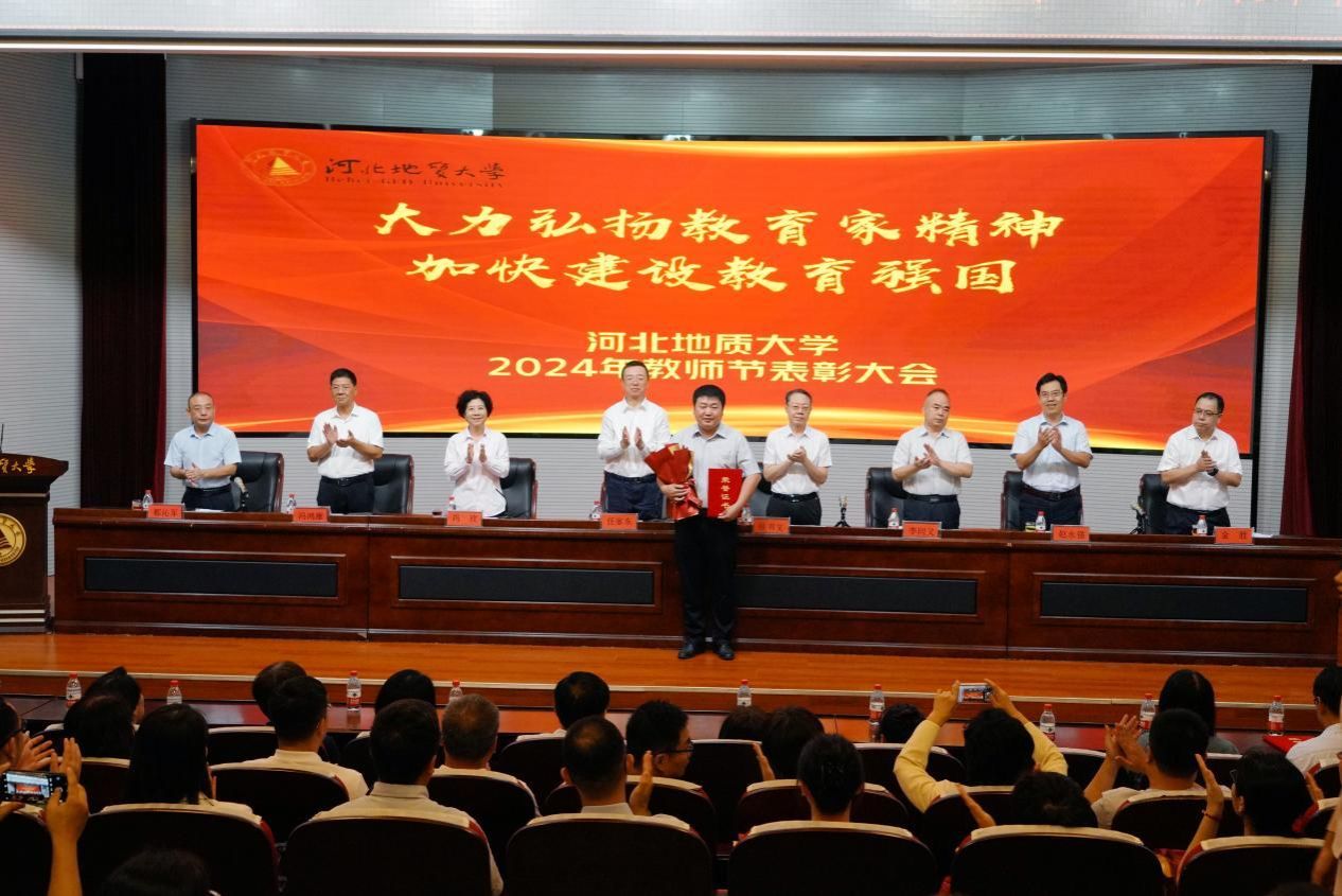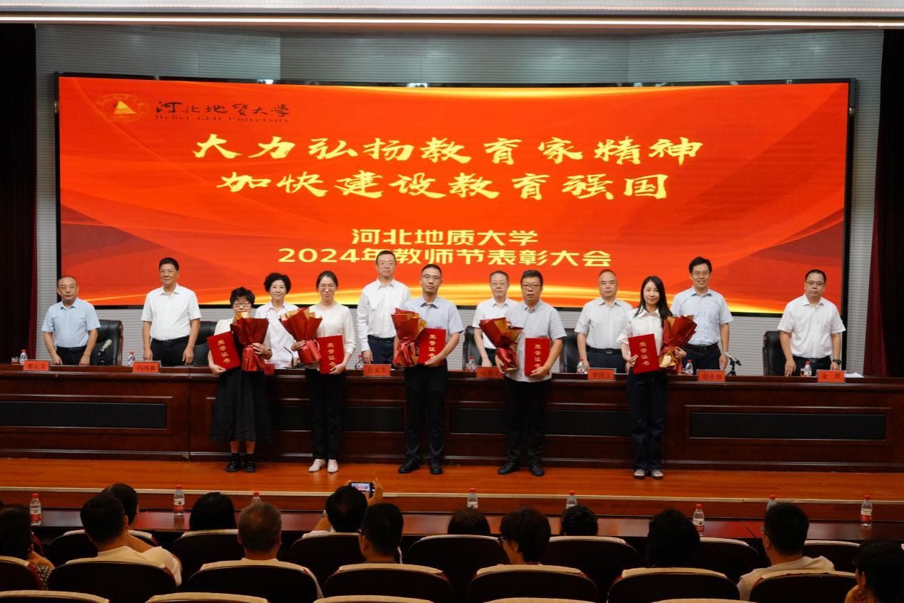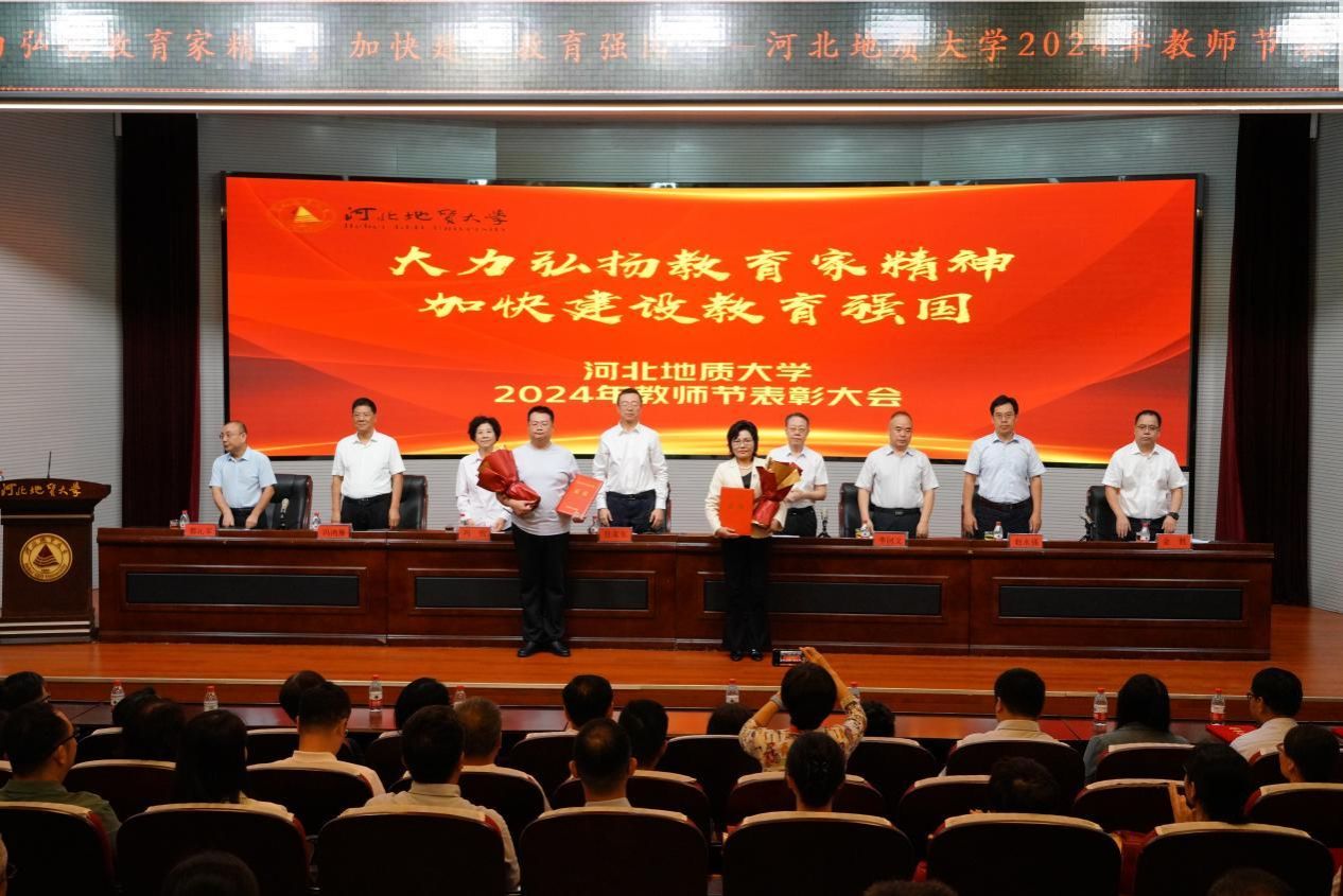 奏唱国歌后,副校长金胜宣读了《beat365在线唯一官网登录关于表彰2023年度先进集体、优秀教师和先进工作者的决定》;副校长都沁军宣读了《中共beat365在线唯一官网登录委员会关于表彰2024年校级师德标兵的决定》;副校长赵永强宣读了《beat365在线唯一官网登录关于表彰2023年度学校教师标兵的决定》;副校长冯鸿雁宣读了《中共beat365在线唯一官网登录委员会关于表彰2024年河北省师德标兵称号的通知》;校党委副书记侯书文宣读了《beat365在线唯一官网登录2024年关于表彰学校从事教育工作满三十年教职员工的决定》。校领导分别为获奖教师和团队颁发了荣誉证书。