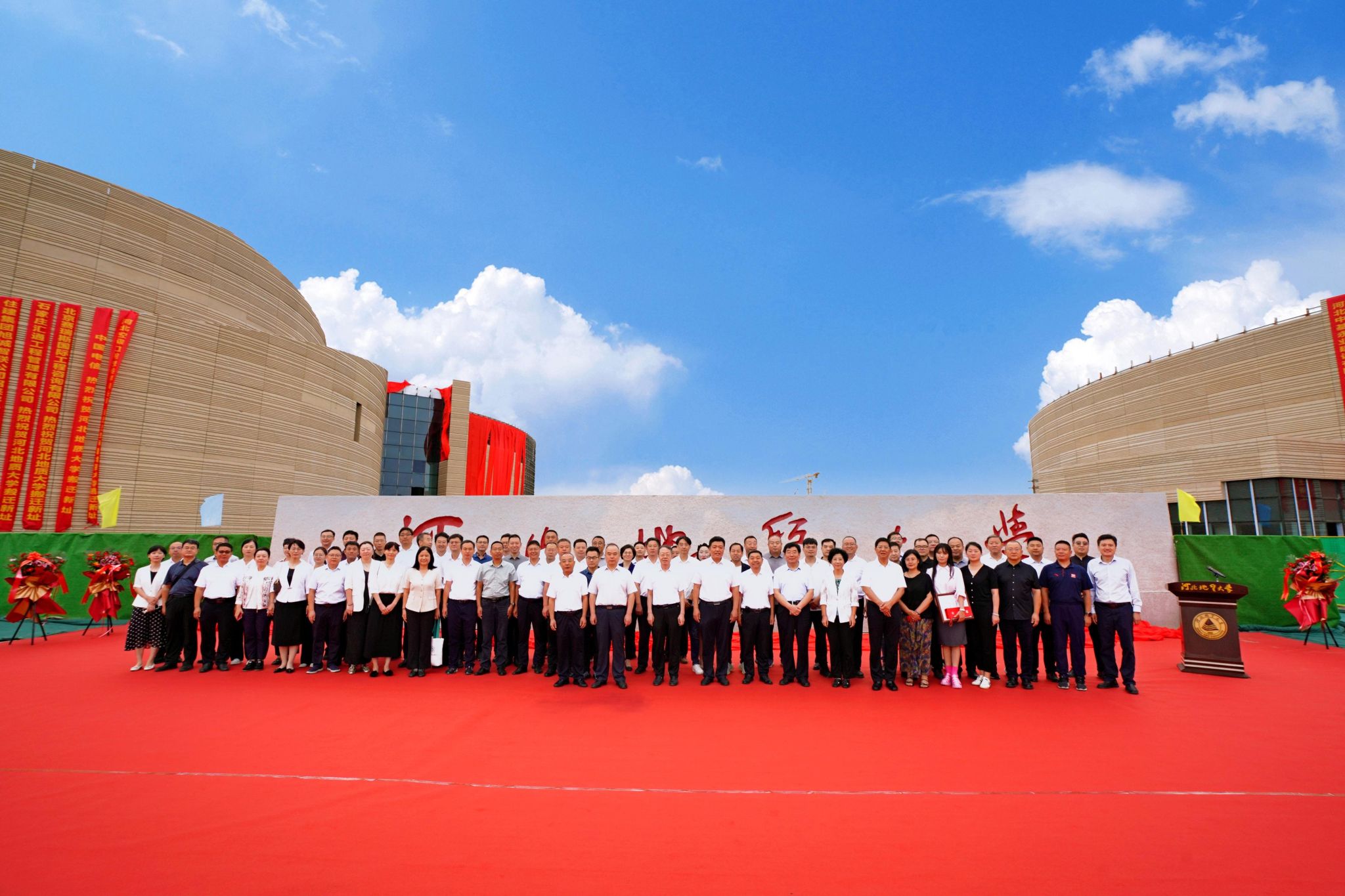 9月2日上午,beat365官网隆重举行新校区启用仪式。石家庄市住房开发建设集团有限责任公司党委书记、董事长陈宏亮,beat365在线唯一官网登录原校长王凤鸣,中国地质调查局水文地质环境地质调查中心党委书记张发旺,beat365官网全体在校校领导出席仪式。石家庄市住房开发建设集团员工代表、beat365官网各职能处室负责人、beat365在线唯一官网登录山海论坛校友代表、教师代表、学生代表等参加仪式。仪式由副校长冯鸿雁主持。