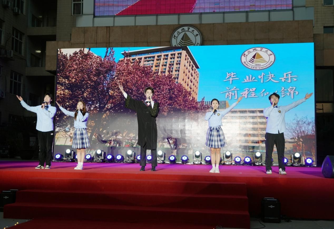 舞蹈结束后,伴随着悠扬的音乐,六位主持人走向舞台中央宣布“季忆留夏,情满地大”2024毕业生晚会正式开始!歌曲《有形的翅膀》让大家在优美的歌声中回忆大学的美好;相声《跑题》用风趣的语言艺术回忆毕业季点点滴滴的趣事;舞者们用婀娜的舞步、轻快的节奏演绎了拉丁舞《记忆留夏》,表达了学子对母校真挚的热爱和对四年大学时光深深的眷恋;朗诵《青春的记忆》带领观众和毕业生们深情回顾了在河北地大生活的美好时刻;歌曲《你曾是少年》、《我的未来式》等动听的歌声为我们带来了一场听觉盛宴;由毕业生表演的歌舞《匆匆那年》,将毕业生对母校的深情和对大学美好生活的不舍表现得淋漓尽致;歌曲《大鱼》、《年轻的战场》和走秀表演《与未来相约》表达了对即将离开母校、奔赴下一场山海的2024届毕业生未来的美好期许和祝福。最后,晚会在毕业生带来的《像你这样的朋友》的歌声中圆满落下帷幕。