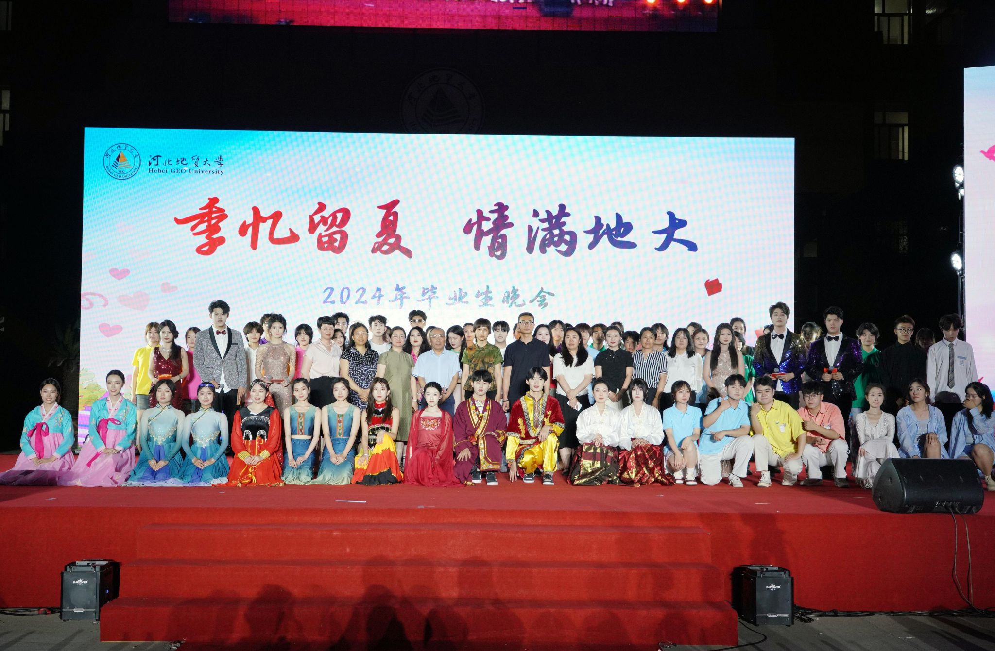 6月14日晚,由校团委主办的“季忆留夏,情满地大”2024年毕业生晚会在校本部主楼广场拉开帷幕。副校长都沁军,各学院党委书记、副书记、团委书记、毕业生辅导员、部分职能处室负责同志和同学们一起观看了晚会。