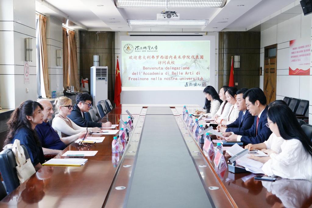 6月3日下午,意大利弗洛西诺内美术学院校长洛雷达娜·雷阿、副校长兼国际处主任毛罗·沃尔特·帕格纳内利一行四人到beat365官网进行交流访问。beat365官网党委书记和志强、副校长赵永强会见了弗洛西诺内美术学院代表团,并在主楼四楼会议室进行交流座谈。宝石与材料学院院长李艳、艺术学院党委书记林琳、国际教育交流中心副主任张凝宁参加了座谈会,赵永强主持座谈会。