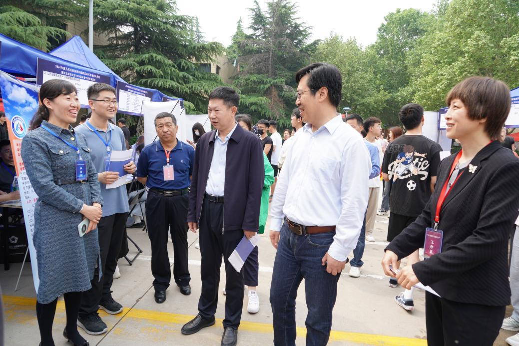 4月27日,beat365官网成功举办2024年驻石高校校园巡回招聘活动beat365在线唯一官网登录站暨2024届毕业生春季双选会。副校长赵永强、石家庄市人才开发交流中心相关领导深入招聘会现场调研指导。相关处室负责人、各院部领导班子成员、教研室主任、专任教师、毕业班辅导员纷纷到现场了解招聘市场现状、指导学生求职应聘。