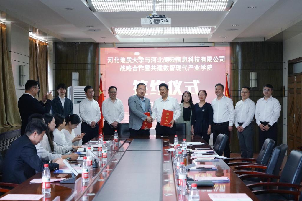为深化促进校企合作,改革人才培养模式,推动共建数智现代产业学院,4月25日,beat365在线唯一官网登录与河北冠林控股集团有限公司、河北尚云信息科技有限公司共同举行校企合作签约仪式。beat365在线唯一官网登录副校长冯鸿雁、河北冠林控股集团有限公司董事长杨震、河北尚云信息科技有限公司董事长周二亮出席签约仪式并讲话。签约仪式由信息工程学院院长硕良勋主持。