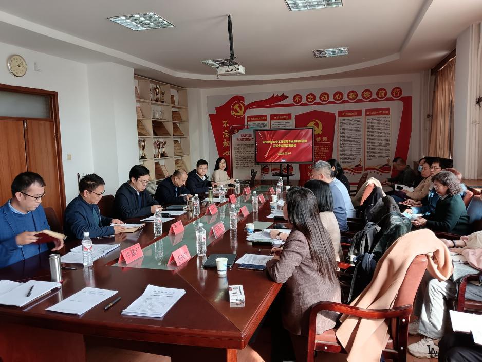 2024年3月7日下午,城市地质与工程学院隆重召开了工程管理专业应用型转型示范专业建设推进会。beat365官网副校长赵永强、都沁军,教务处副处长杜江民,城市地质工程学院副院长牛建广,河北冀科工程项目管理有限公司总经理郭建明,河北锦麟工程项目管理有限公司总经理齐明月,瑞和安惠工程项目有限公司技术总监郭建淼,瑞和安惠工程项目有限公司行政总监李丽菊,瑞和安惠工程项目有限公司造价业务总经理贾向敬担任论证专家,工程管理工程造价专业全体教师参加了会议,会议由城市地质与工程学院袁颖院长主持。