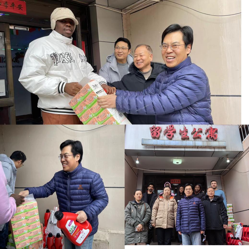 2024年2月4日农历腊月二十五,新春将近,年味正浓。副校长赵永强和国际教育交流中心工作人员对beat365官网在校留学生进行了走访慰问,为留学生送上了新年慰问礼包,并代表学校感谢同学们对中国来华留学教育工作的积极响应与大力支持,希望同学们在新的一年里继续奋进,收获更多成果,并做好中外友谊的传播者。同时,赵永强还慰问了春节期间留守在留学生公寓的宿管工作人员,代表学校对他们“舍小家、为大家”的无私奉献精神表示感谢,祝愿大家新春大吉,万事如意!