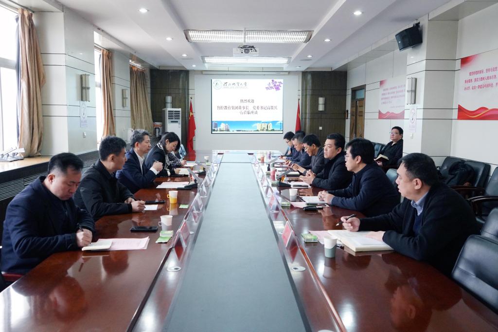 1月31日上午,校党委书记和志强与鲁控教育控股集团有限公司党委书记、董事长高贯兵一行进行工作会谈。
