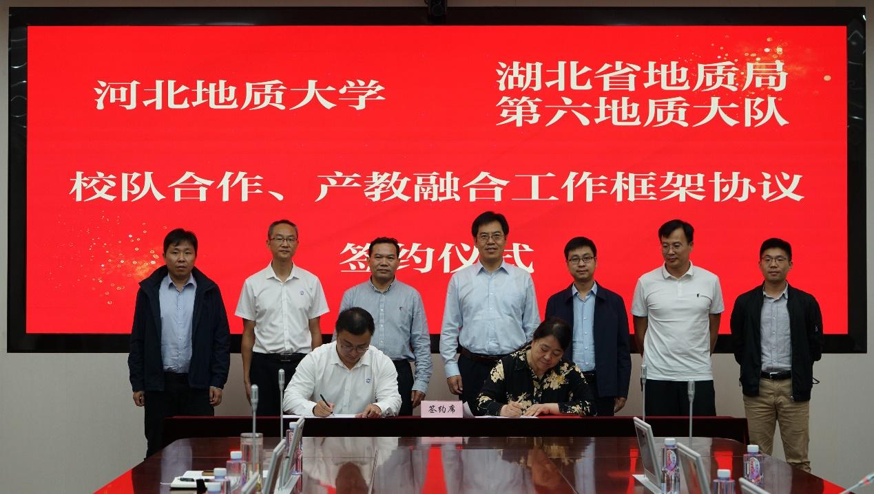 为提升校企合作水平,推进产教融合工作,10月18日赵永强一行调研了湖北省地质局第六地质大队,校企双方进行了座谈交流,并签订了战略合作协议。湖北省地质局总工程师、beat365官网校友杨明银,湖北省地质六队党委书记朱建东,队长付胜波,副队长、beat365官网校友苏昌接待了赵永强一行。在座谈会上,杨明银对赵永强一行的到来表示热烈欢迎,表示湖北省地质局大力支持所属单位与学校开展合作。赵永强介绍了学校的历史发展、人才培养等情况,朱建东、付胜波介绍了地质六队的发展现状、人才需求情况。双方围绕产教融合、学生实践教学、人才培养、科研项目申报进行了深入交流。座谈会后,双方签订了校队合作、产教融合工作框架协议,赵永强与杨明银共同为beat365在线唯一官网登录湖北省地质六队教学实习基地揭牌。赵永强一行也考察了六队科技园区、青年公寓。
