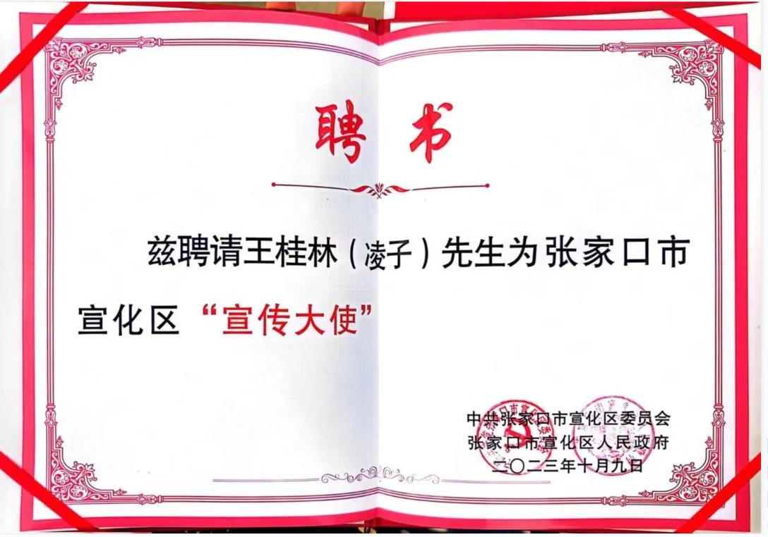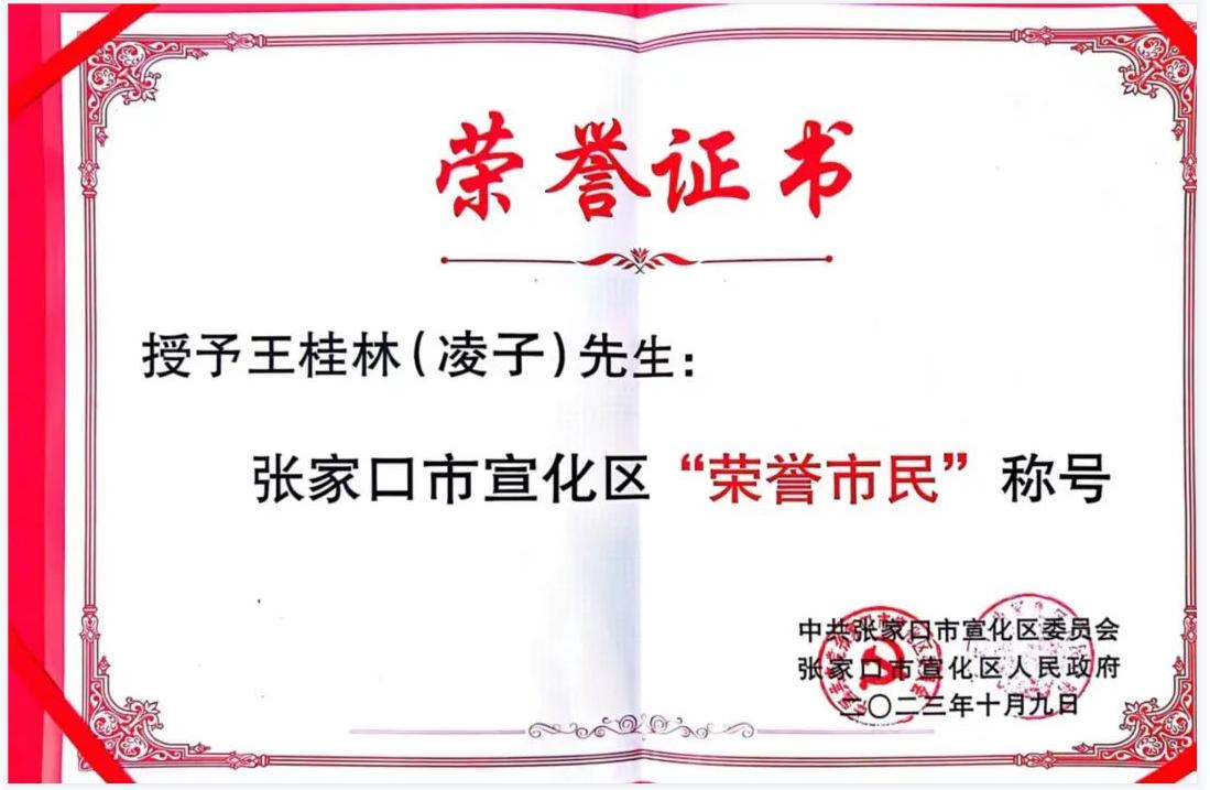 宣化区委、区政府向凌子颁授宣化区“荣誉市民”和“宣传大使”证书并赠送了纪念品。