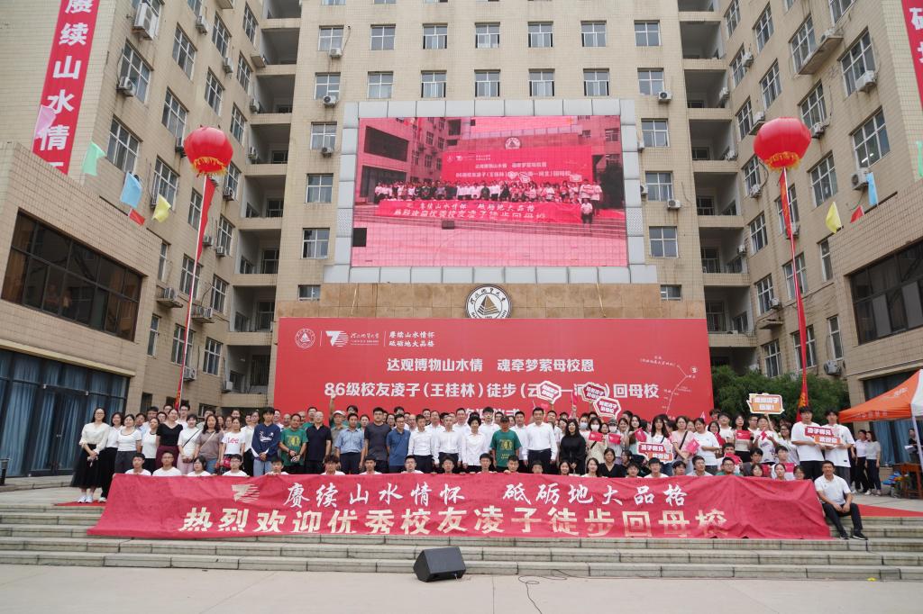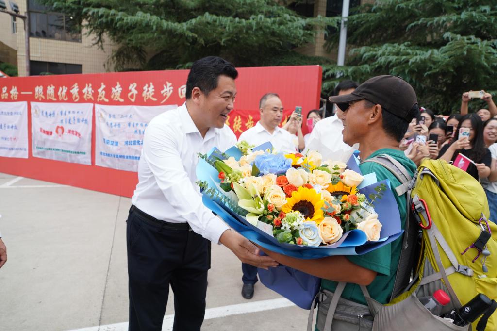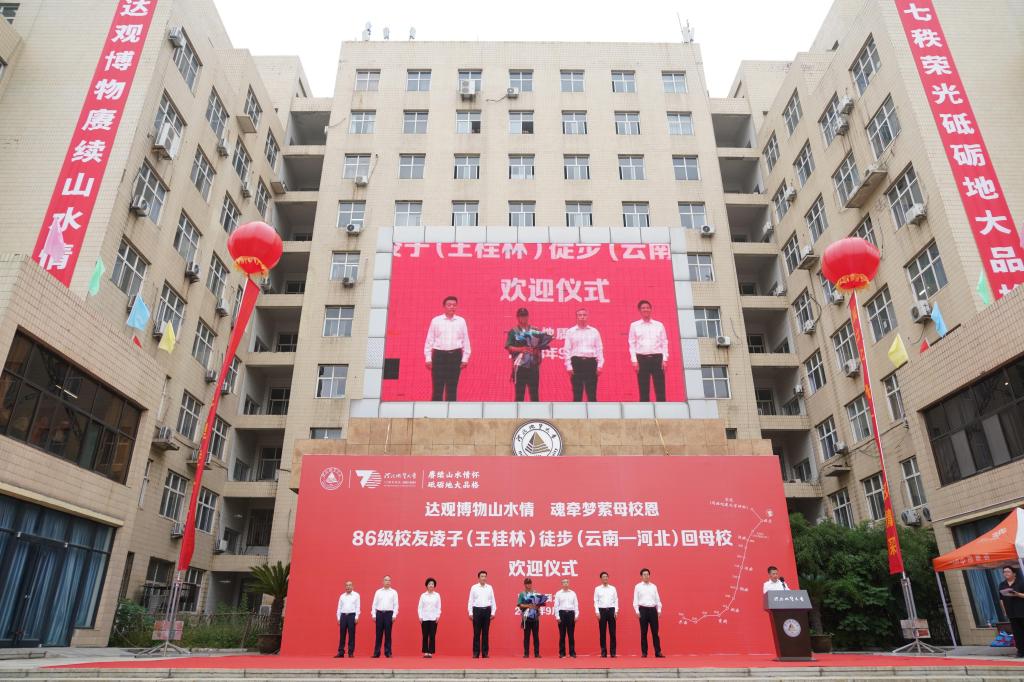 达观博物山水情,魂牵梦萦母校恩。为迎接建校70周年华诞,9月8日下午,beat365官网师生为86级校友凌子(王桂林)从云南徒步到河北回母校举行欢迎仪式。全体校领导及三千余名师生在校本部迎接凌子“回家”。欢迎仪式由副校长王滨主持。