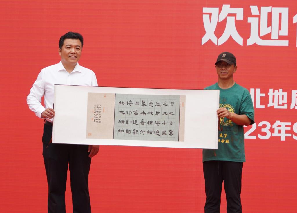 王滨在总结讲话中指出,人生最大的快乐莫过于故人相见,世间最大的真诚莫过于师生情谊。凌子校友用徒步万里北归母校的“壮举”,深刻诠释了艰苦奋斗的地质人精神,用一步一个脚印的虔诚讼唱了河北地大70年薪火相继的弦歌。他一路走来,把河地大深沉的山海情怀和博达的山水文化播散在祖国大地上,凌子就是河地大人的榜样,是河地大学子的楷模,是我们两万名在校学生的精神坐标。我们要大力传承凌子的榜样精神,为河地大更加美好的明天而努力奋斗。