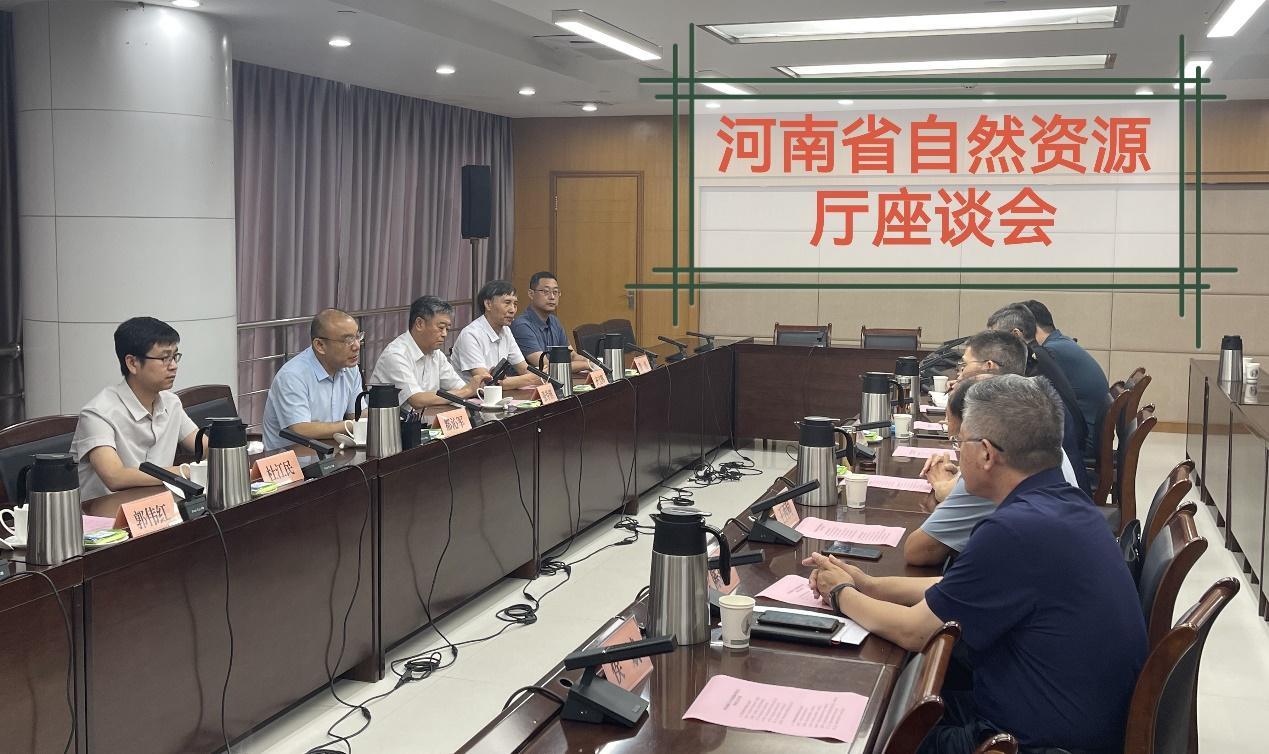 下午,都沁军一行来到河南省自然资源厅交流座谈,座谈会由河南省自然资源厅副厅长高团吉主持。河南省自然资源厅二级巡视员冯进城,原厅一级巡视员王西同,审计处一级调研员林继明,地质勘查管理处处长陈新中,财务处处长郑拓,人事处副处长侯斌出席座谈会。