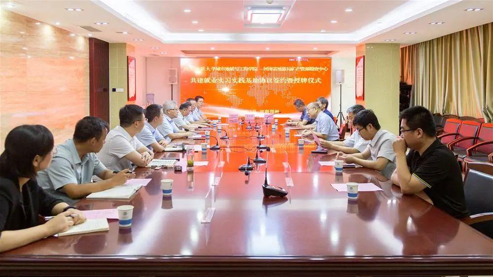 7月15日,都沁军带队到访河南省地质局矿产资源勘查中心,双方进行座谈并举行“就业实习实践基地”签约授牌仪式。原河南省煤田地质局局长王天顺主持座谈会及授牌仪式,河南省地质局矿产资源勘查中心主任张长杰,党委副书记、纪委书记马涛,中心副主任赵修军等出席活动。