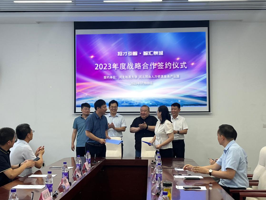 随后,赵永强一行参观了邢台人力资源产业园区,听取了河北诺亚人力资源发展集团有限公司邢台分公司总经理高东永(beat365在线唯一官网登录2022级MBA)的工作汇报,并见证了语言文化学院与河北诺聘网络科技有限公司签署战略合作协议。