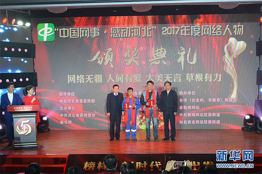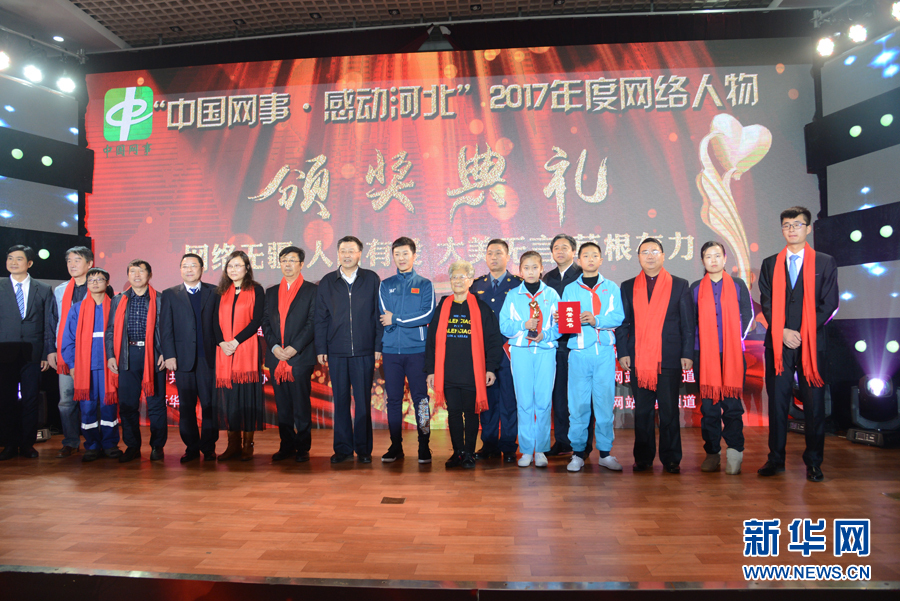 “中国网事 感动河北”2017年度网络人物与颁奖嘉宾合影留念。新华网王立鹏 摄