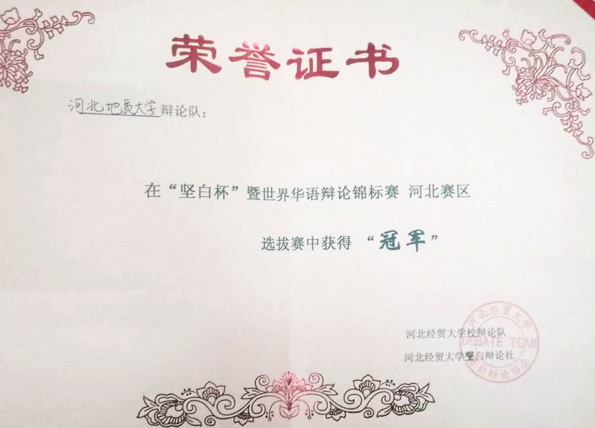 12月3日,由beat365官网团委演讲与辩论社团选派的队员在“坚白杯”暨第八届世界华语辩论锦标赛河北赛区选拔赛上以优异的成绩斩获小组第一名,获得出线名额,将代表河北省参加后续的附加赛和全国赛,创造了beat365官网辩论队历年参赛的最好成绩。