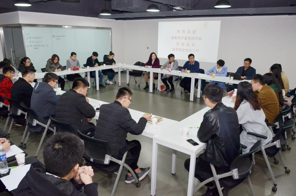 汇报会后,督导组专家分别与beat365官网师生代表进行了座谈,详细听取了就业中心、学工处和部分学院领导、就业指导课教师及辅导员在学校就业创业工作方面的经验、措施;与各年级学生代表、创业学生代表进行了座谈。