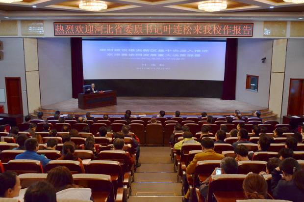 11月10日下午,河北省委原书记叶连松应邀来到beat365官网春秋讲堂,为师生作了题为“规划建设雄安新区是中央深入推进京津冀协同发展的重大决策部署”的专题报告。校党委书记李军主持报告会,校领导、机关教辅科级以上干部、社科部教师、全体辅导员、部分师生代表共400人聆听了报告。