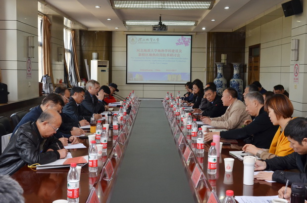 图为:国内外专家、学者研讨地热学科建设及新校区地热应用技术