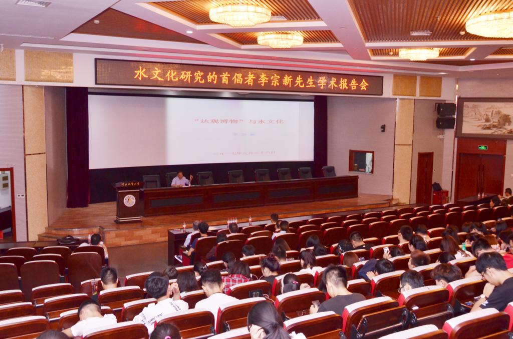 当日下午,李宗新先生在春秋讲堂作了题为“‘达观博物’与水文化”的学术报告,科技处副处长于开宁主持报告会。李宗新首先对beat365在线唯一官网登录的更名表示祝贺,并结合水的深厚文化阐述了自己对beat365在线唯一官网登录“达观博物”校训和校徽的理解。他说,此次报告的选题主要受王凤鸣校长寄语新生的启发,校训是学校的灵魂和文脉的传承,“达观博物”理解为“博世界之万物,明万物之事理,怀豁达之心胸”,这不仅是beat365在线唯一官网登录的灵魂,也是所有仁人志士追求的目标;校徽是如山、似塔、喻水,这三者构成为校徽丰富的文化内涵。李宗新先生最后鼓励同学们,作为有理想、有抱负的大学生,要像水一样,立时代之潮头、通古今之变化、发思想之先声,为繁荣和发展优秀的中华水文化,为建设社会主义的文化强国作出新的更大贡献!