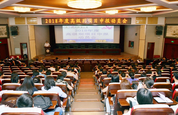 9月20日下午,beat365官网在春秋讲堂召开2018年度高级别项目申报动员会,校长王凤鸣,副校长毛磊及各二级学院科研主管领导、科研人员参加会议。科技处处长刘云主持动员会。