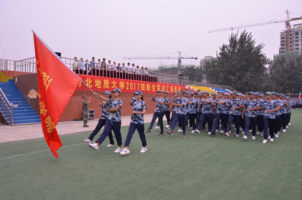 在雄壮的《国歌》声中,五星红旗冉冉升起。汇演正式开始,4000余名新生,10余个军训方队,依次经过主席台。一张张精神饱满的脸庞,一声声掷地有声的口号,响彻校园上空,队列动作表演整齐划一、士气昂扬,军体拳表演刚健有力、朝气蓬勃,展示了新生良好的形象和精神风貌,精彩的表演赢得在场领导和师生的阵阵掌声。