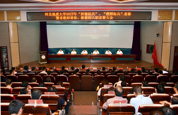 图为:2017年“师德标兵”、“教师标兵”表彰暨老教师荣休、新教师入职宣誓大会现场