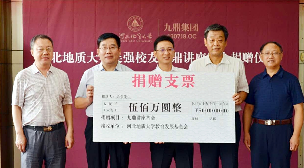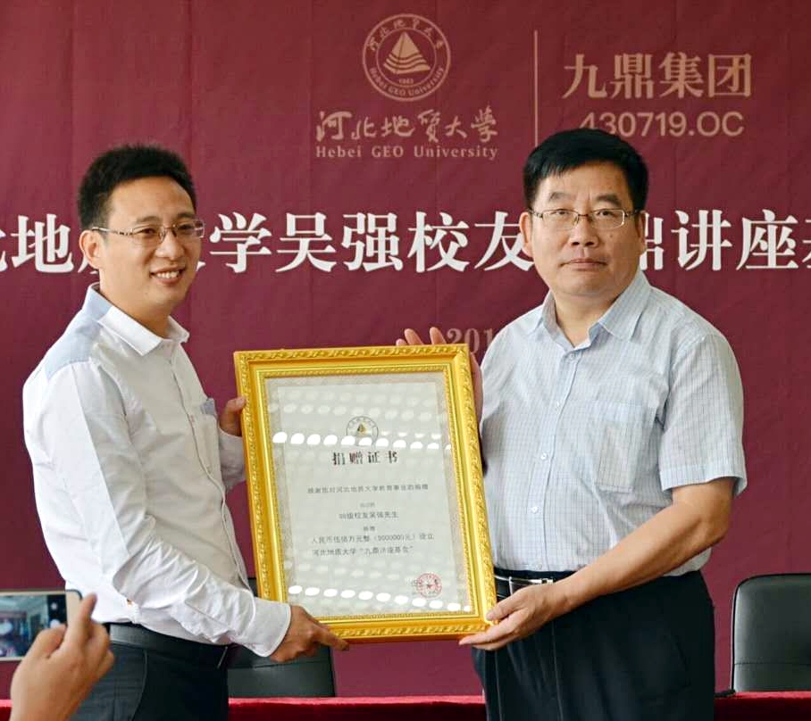 吴强先生在致辞时首先深情地回顾了阔别十五年的母校和美好的大学生活,回顾了师生情和同窗情,向母校和陪伴自己成长的师生们表达了由衷的谢意。他表示,今日的发展得益于母校的培养,为回馈母校,决定以个人名义为beat365在线唯一官网登录教育基金会捐赠500万元作为“九鼎讲座”基金,专项用于学校开展高水平讲座活动,希望个人的微薄力量能够起到抛砖引玉的作用,以此吸引更多的校友关心、关注和支持母校发展,为母校建设助力。
