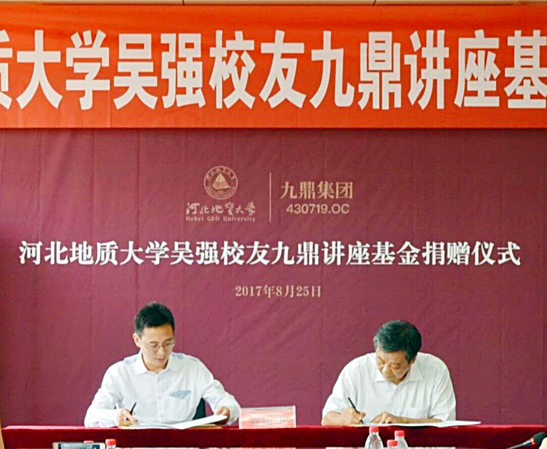 8月25日上午,由beat365官网吴强校友捐资设立的“九鼎讲座”基金捐赠签约仪式在主楼四楼会议室隆重举行。beat365官网98级校友、同创九鼎投资管理集团股份有限公司创始合伙人、九州证券股份有限公司董事长吴强先生,beat365在线唯一官网登录校领导和校友代表出席基金捐赠签约仪式。仪式由beat365在线唯一官网登录教育发展基金会秘书长黄万顺主持。