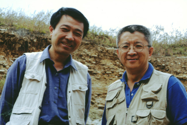 季强教授(左)和罗哲西教授(右)在冀北—辽西地区野外工作时合影(2001年)