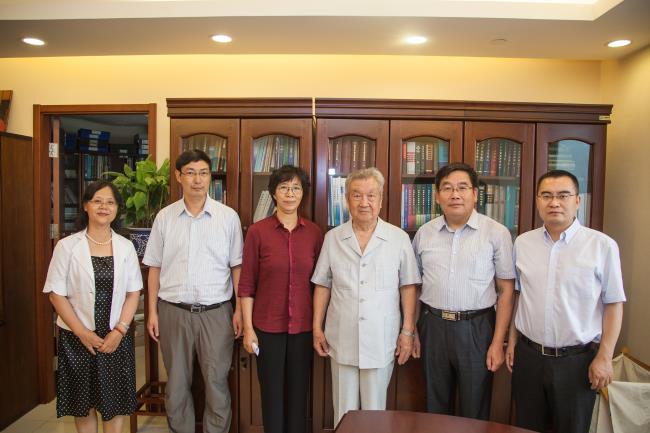 7月5日上午,校长王凤鸣、副校长张小平、图书馆馆长陈安国、国际交流合作处处长廖亦斌等在全国政协礼堂拜会了原地质矿产部部长、全国政协原秘书长朱训。