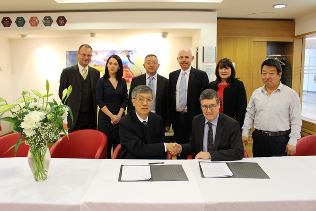 副校长毛磊(前排左1)与厄尔斯特大学副校长伊恩·蒙哥马利(前排右1)签署合作协议