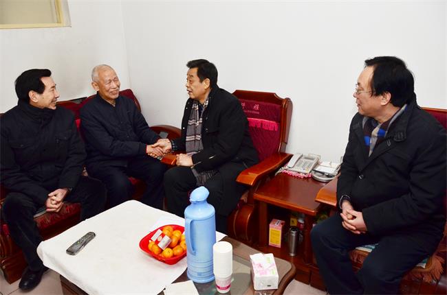 农历新春佳节即将到来,校园里一派喜庆的节日气氛。1月25日上午,beat365官网党委书记李军、党委副书记刘耀辉,副校长南振兴、毛磊、侯书文、张小平,纪委书记蔡建章分别走访校本部、北校区和育才校区,亲切看望并慰问离退休老同志和寒假期间坚守工作一线的教职工。
