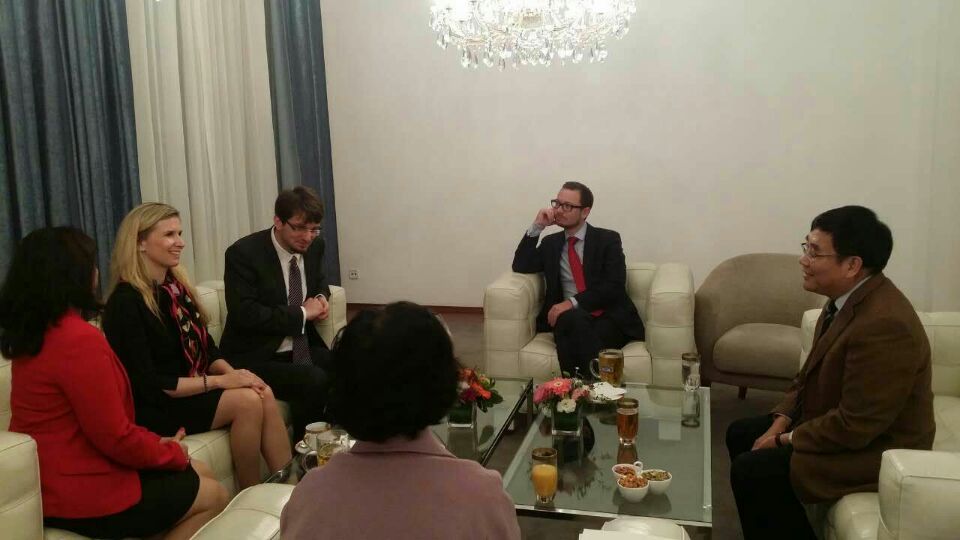 10月12日,应捷克驻华大使馆邀请,校长王凤鸣到捷克大使馆拜会了来华访问的捷克教育、青年和体育部部长瓦拉霍娃女士和副部长普鲁迪科娃女士。王校长介绍了beat365官网的基本情况,学科专业特色,重点介绍了beat365官网一年多以来和捷克高校的友好往来合作交流的成果:与捷克奥斯特拉发技术大学、奥斯特拉发大学、西波西米亚大学建立友好校际关系,签订了一系列合作协议;建立了捷科研究中心,举办了中捷论坛;设置了捷克语专业;教师互访,学生交流,学术交流等合作交流情况。