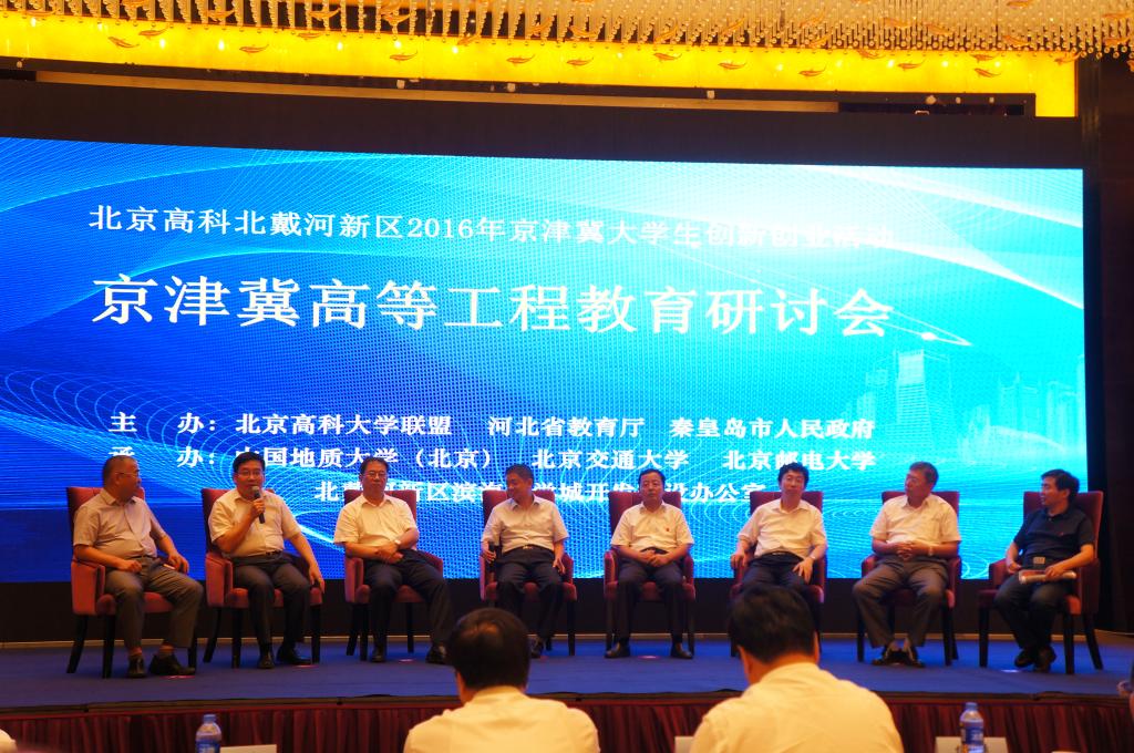 本次研讨会是由北京高科大学联盟、河北省教育厅、秦皇岛市人民政府主办。中国地质大学(北京)、北京交通大学、北京邮电大学、北戴河新区滨海大学城开发建设办公室承办。旨在进一步推进京津冀高等教育协同发展,深化北京高科大学联盟与天津市、河北省相关高校的交流与合作,深入探讨新形势下高等工程教育面临的主要问题和发展方向。