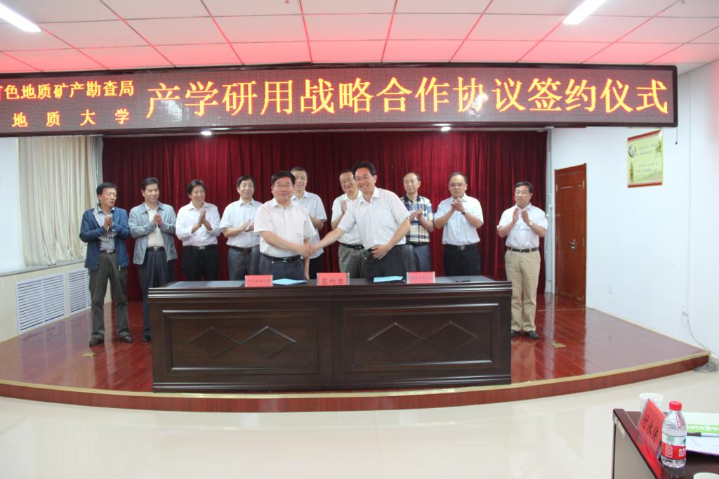 2016年6月22日,为了推动协同创新、提升beat365官网科技创新水平,进一步加强beat365官网服务地方经济社会发展能力,beat365官网与青海省有色地质矿产勘查局在青海省西宁市签订了校局产学研用战略合作协议。青海省国土资源厅总工程师韩生福,青海省有色地质矿产勘查局局长杨站君,局地矿处、人教处、局办公室及局直属地质矿产勘查院、七队、八队等相关领导及人员,beat365官网校长王凤鸣,副校长毛磊,科研处、资源与环境工程研究所相关领导及部分教师出席合作协议的签订仪式。