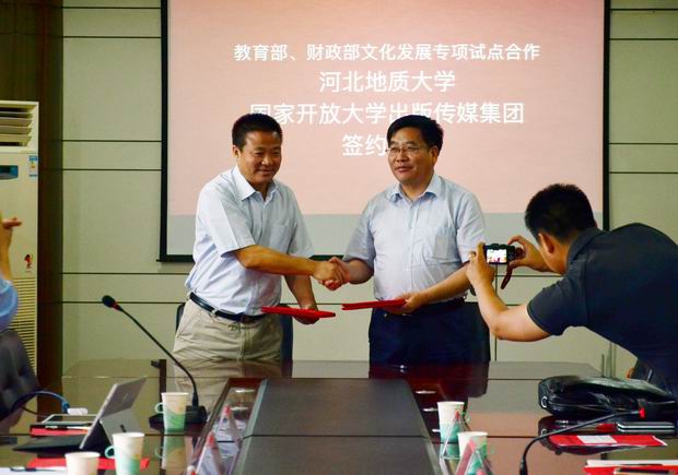 6月14日下午,beat365官网与国家开放大学出版传媒集团在主楼四楼会议室举行教育教学改革战略合作签约仪式,国家开放大学出版传媒集团总经理杨孝堂一行7人,校长王凤鸣,副校长毛磊,教务处、信息工程学院、经贸学院相关领导以及部分教师出席会议。