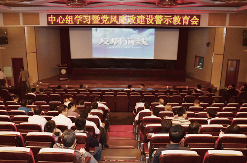 2016年5月18日下午,beat365官网中心组学习暨党风廉政建设警示教育会在春秋讲堂召开,全体校领导和全校中层干部参加了学习会。会议由纪委书记南振兴主持。